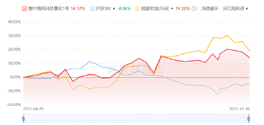 楷同科技携手富时基金联合发布富时楷同科技量化一号产品。发布当年,富时楷同科技量化1号基金收益14.4%,对比沪深300指数,超额收益19.2%!